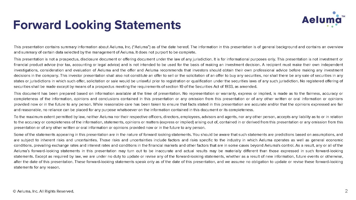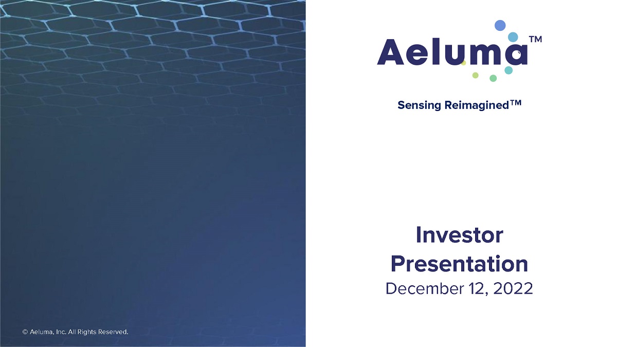 Investor Presentatio n December 12, 2022 © Aeluma, Inc. All Rights Reserved. Sensing Reimagined TM