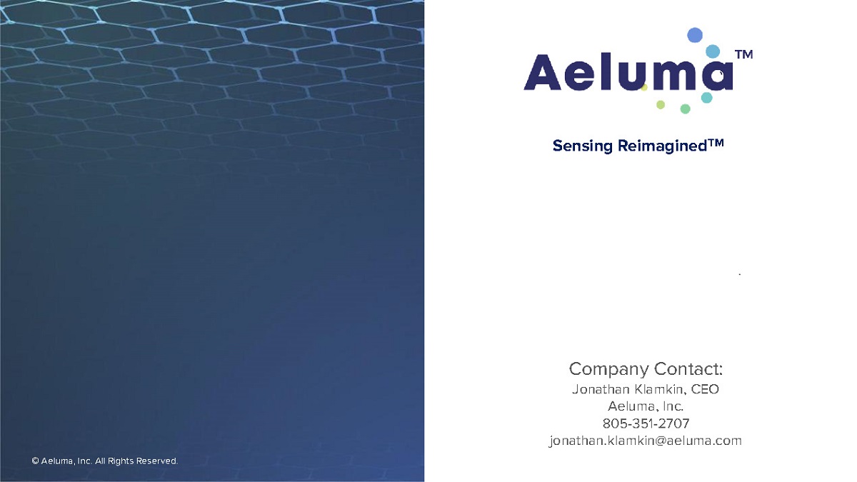 © Aeluma, Inc. All Rights Reserved. Company Contact: Jonathan Klamkin, CEO Aeluma, Inc. 805 - 351 - 2707 jonathan.klamkin@aeluma.com Sensing Reimagined TM